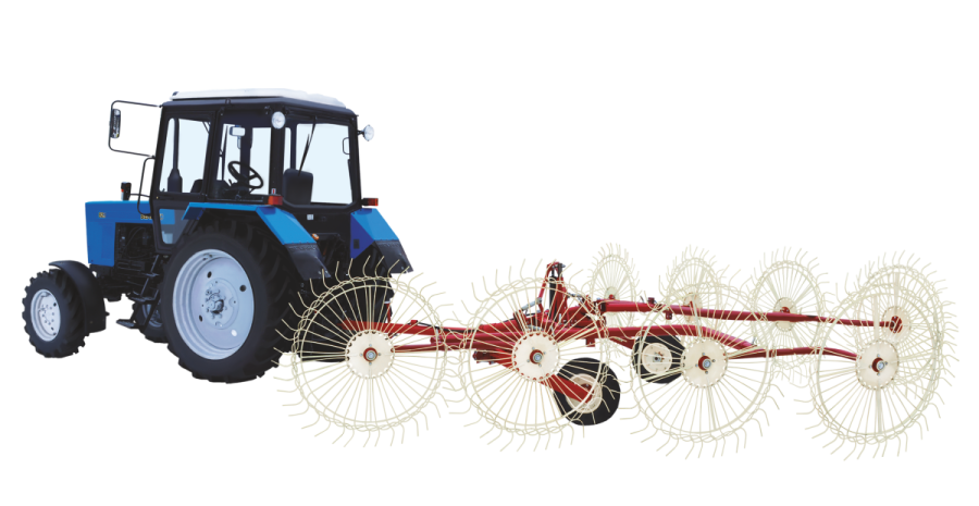 Грабли-ворошилки валкообразователи – это гидрофицированные прицепные агрегаты, способные, в зависимости от условий применения и комплектации, выполнять одну из трех операций: ворошение провяленой травы в прокосах, сгребание ее из прокосов в валки и оборачивание валков. Выпускаются в навесном и прицепном исполнении шириной захвата 6м или 8м.