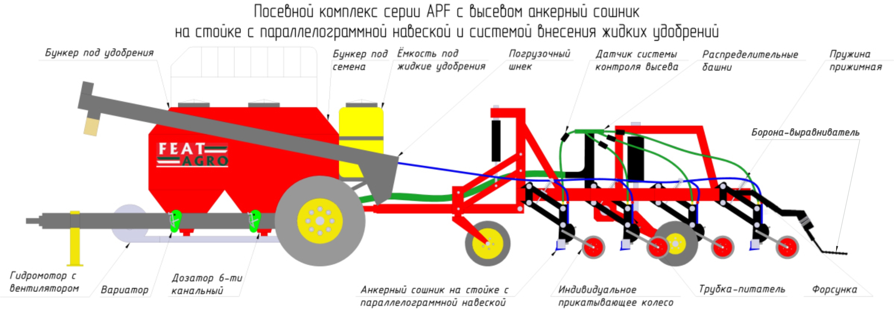 - Установка дополнительной опции - системы внесения жидких удобрений - предусмотрена благодаря выводу питателя в анкер.